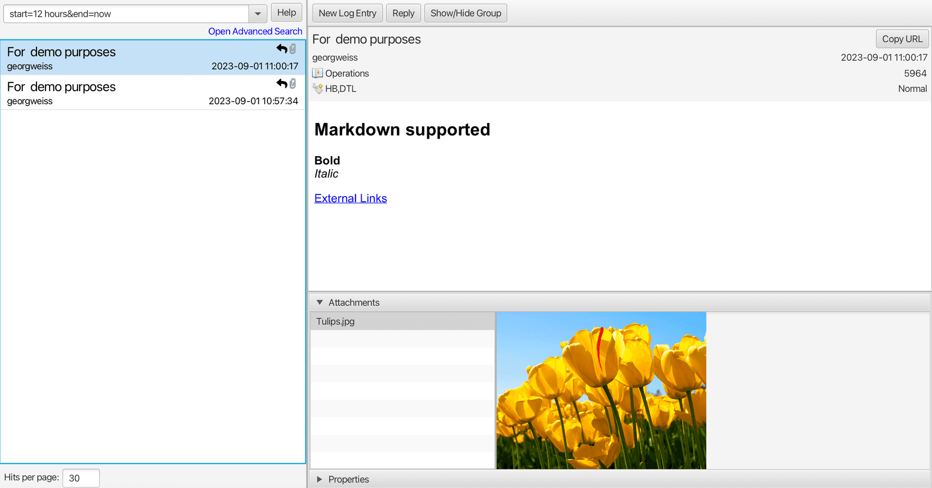 The Log Entry Table displays log entries and any attached files that might be included while also letting users search for specific log entries that match their filtered query. Many other applications integrate with the Logbook by including a “Send to Logbook” button which allows for the quick creation of an entry. The log entry menu also easily lets users attach images of the current CS-Studio window or Data Browser snapshot.